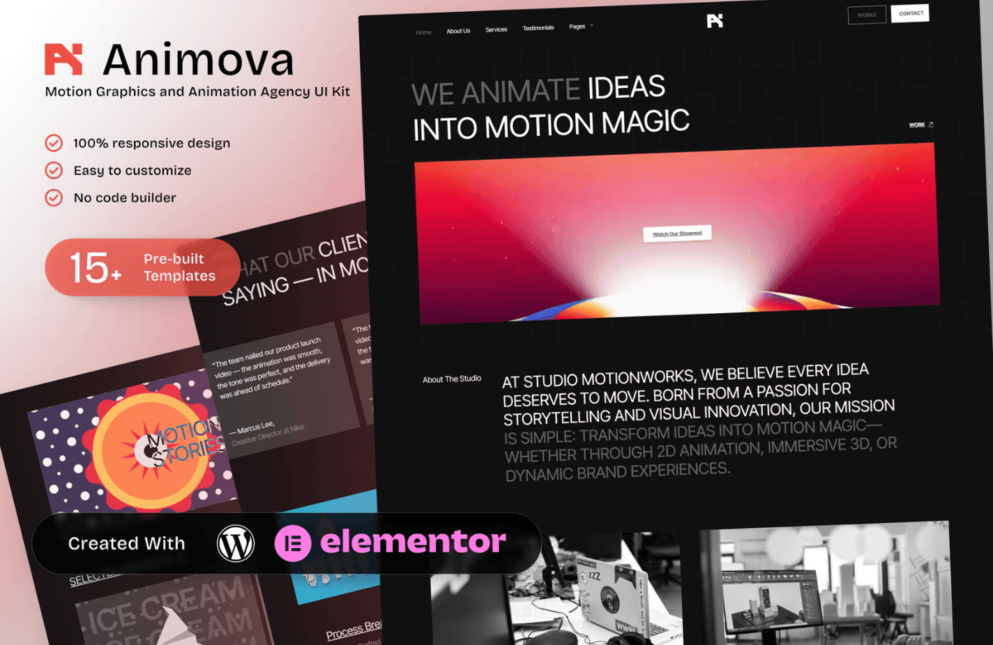 Features of Animova – Motion Graphics and Animation Agency Elementor Template Kit