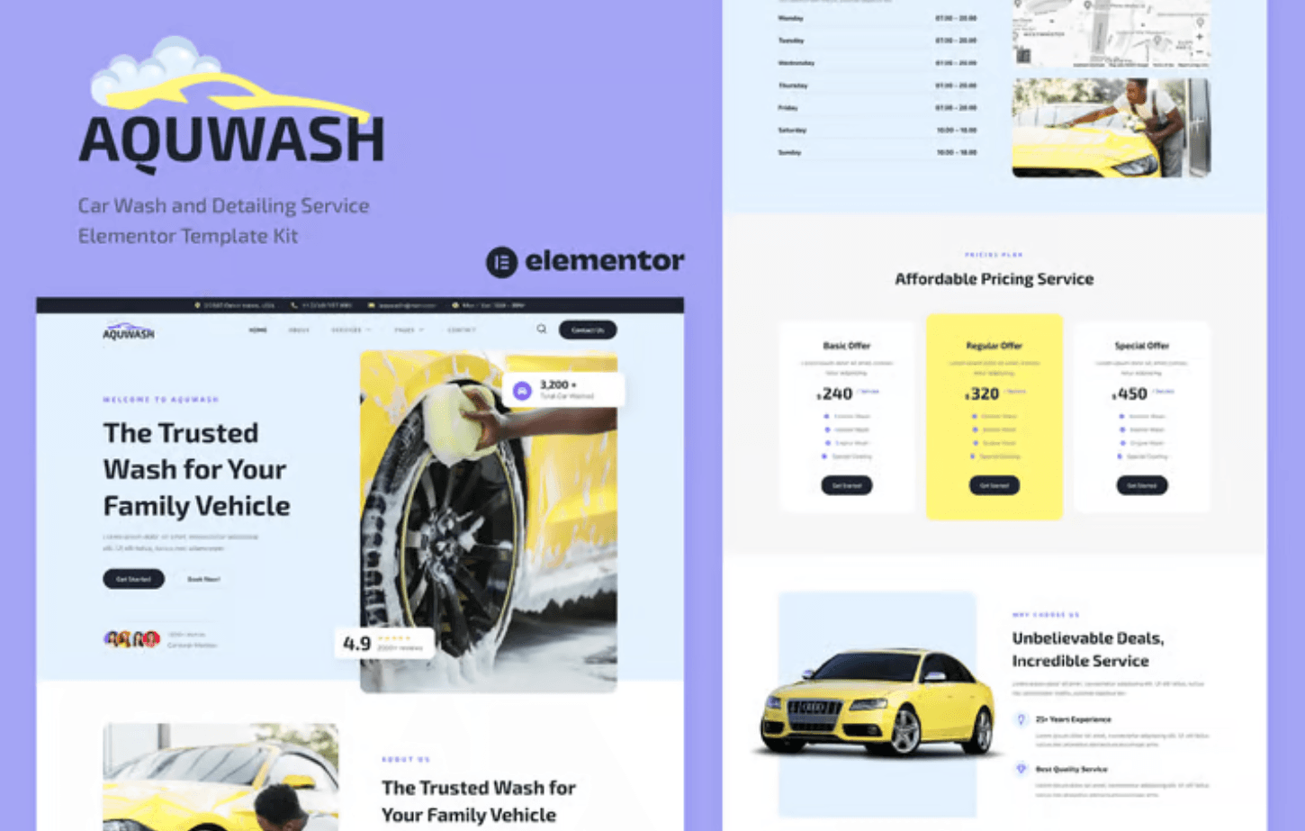 Features of Aquwash – Car Wash and Detailing Service Elementor Template Kit