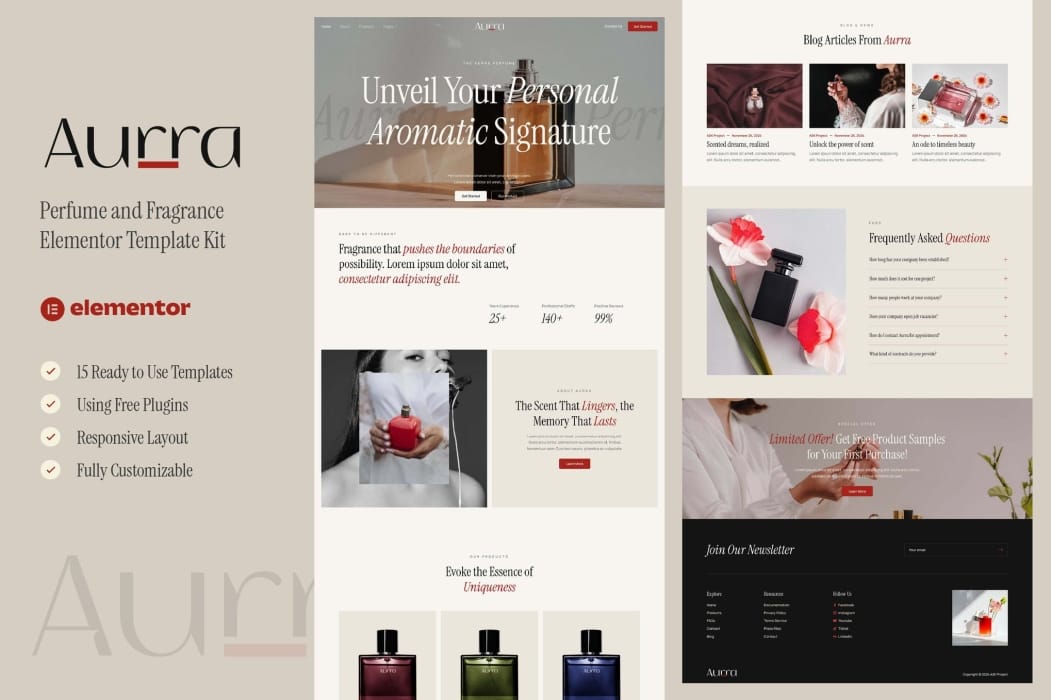Aurra – Perfume and Fragrance Elementor Template Kit