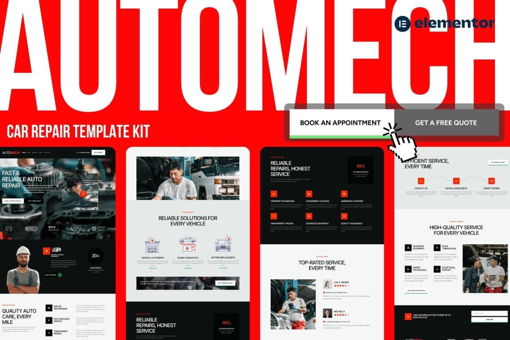 Meet Automech, the perfect Elementor template kit designed for auto repair services. With a sleek and user-friendly design, it helps you showcase your services effectively. Customize easily to fit your brand and attract more customers with stunning visuals and clear layouts. Get your auto repair website up and running quickly with Automech!