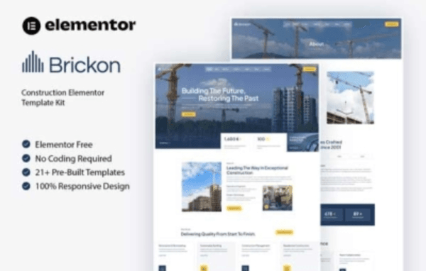 Introducing Brickon, the perfect Elementor Template Kit designed specifically for construction and building businesses. With its sleek and modern design, Brickon offers a range of customizable templates that make creating a professional website easy and intuitive. Whether you’re showcasing projects or services, this kit provides all the tools you need to build an impressive online presence effortlessly. Transform your construction site into a stunning website with Brickon!