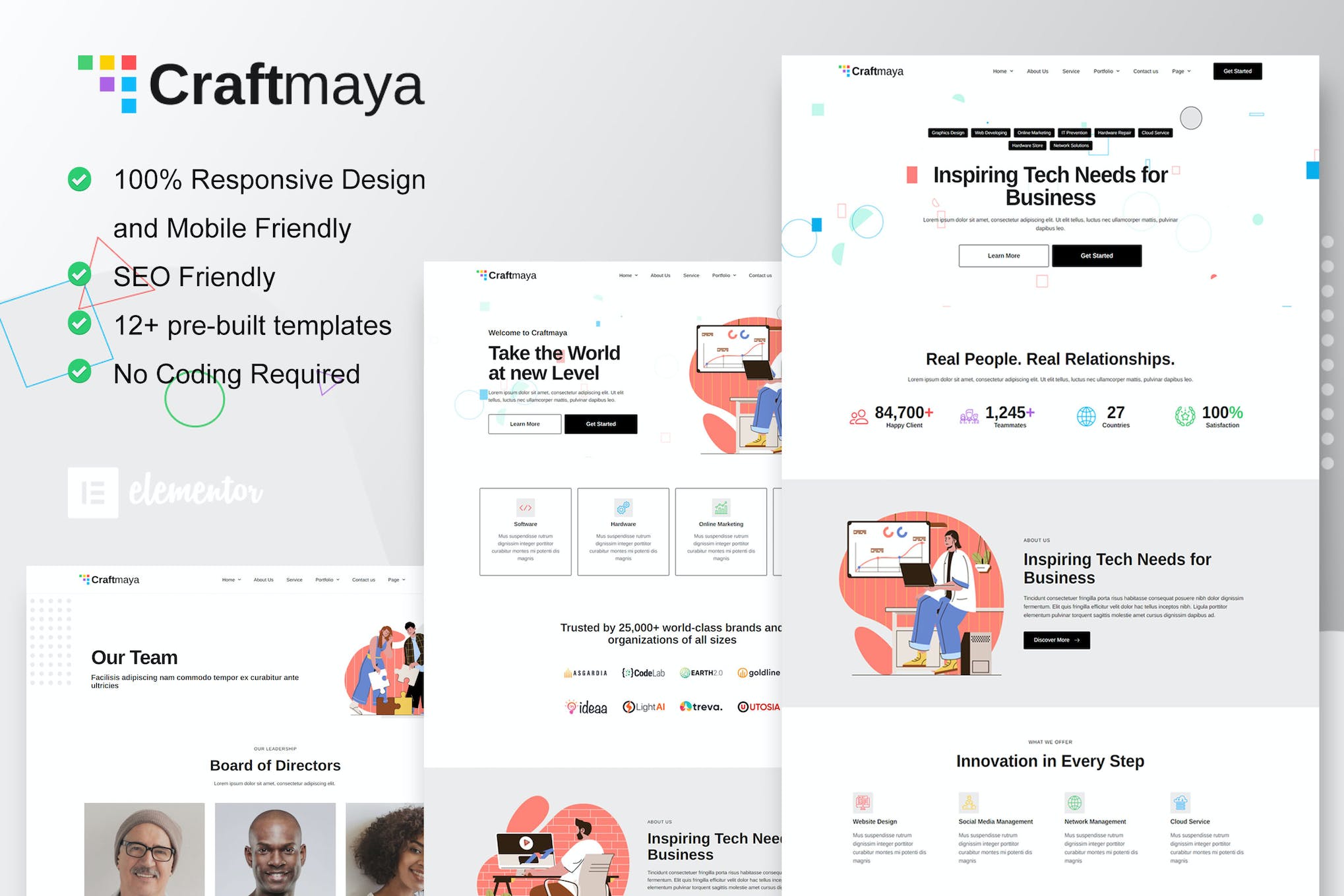 Features of CraftMaya – IT Solutions & Services Company Elementor Template Kit