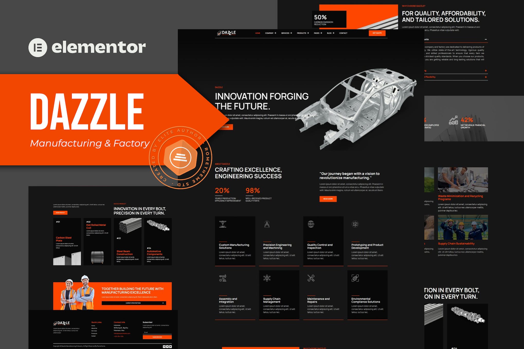 Features of Dazzle – Manufacturing & Factory Elementor Pro template Kit