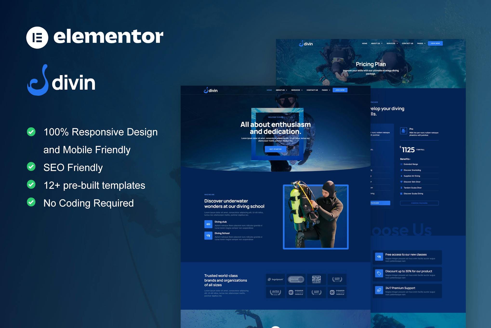 Features of Divin – Diving Club Elementor ProTemplate Kit
