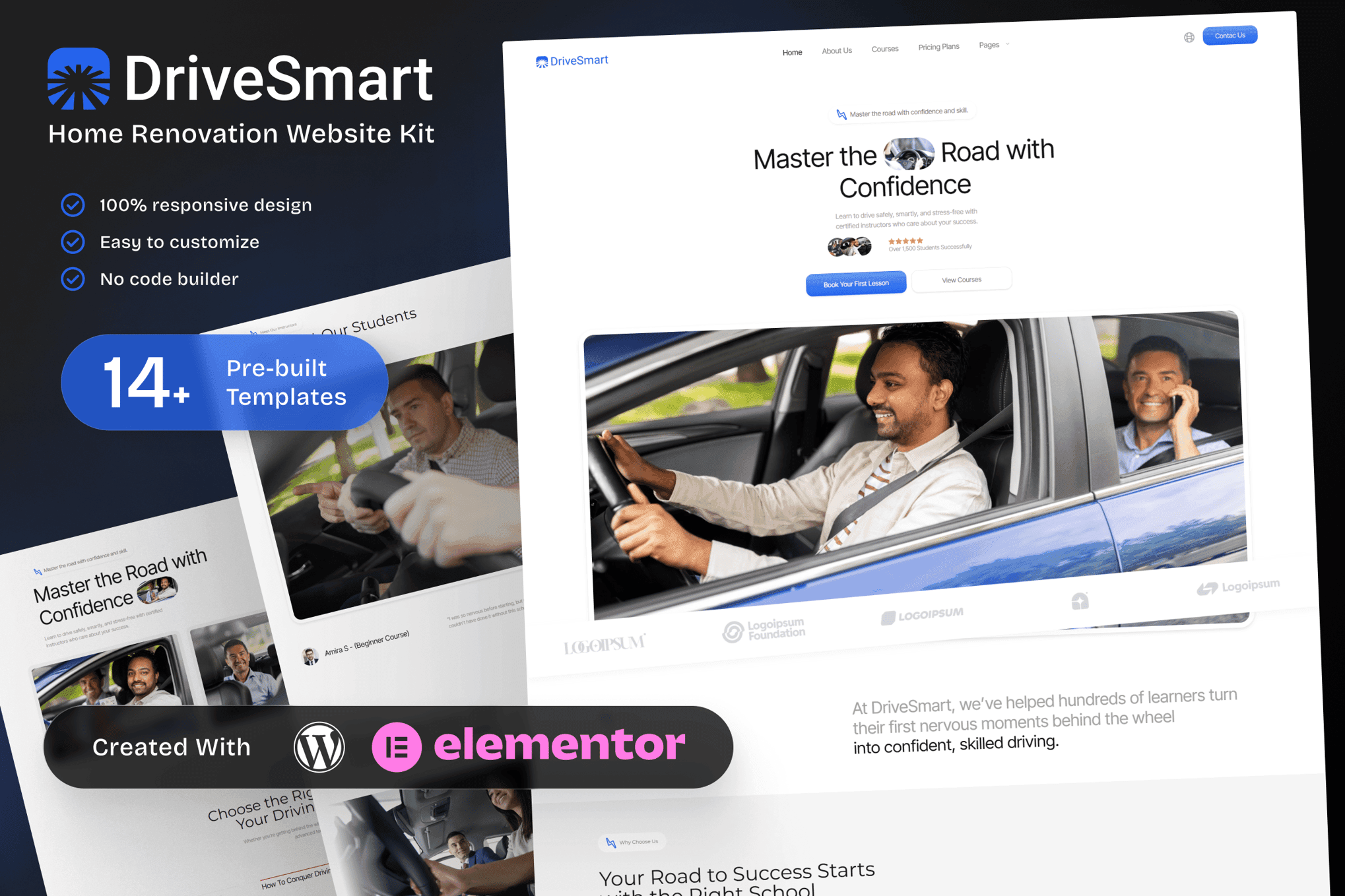 Download the DriveSmart Template kit at the best price worldwide. We provide 100% original elementor template kits from developers without ads, viruses or malicious code. It has been scanned by VirusTotal, which ensures that you are downloading only clean, safe, and trusted files. Buy the DriveSmart – Driving School Website Elementor Template Kit with a General Public License key to get lifetime free usage. If it doesn’t work or is broken, we’ll refund your money (product guarantee).