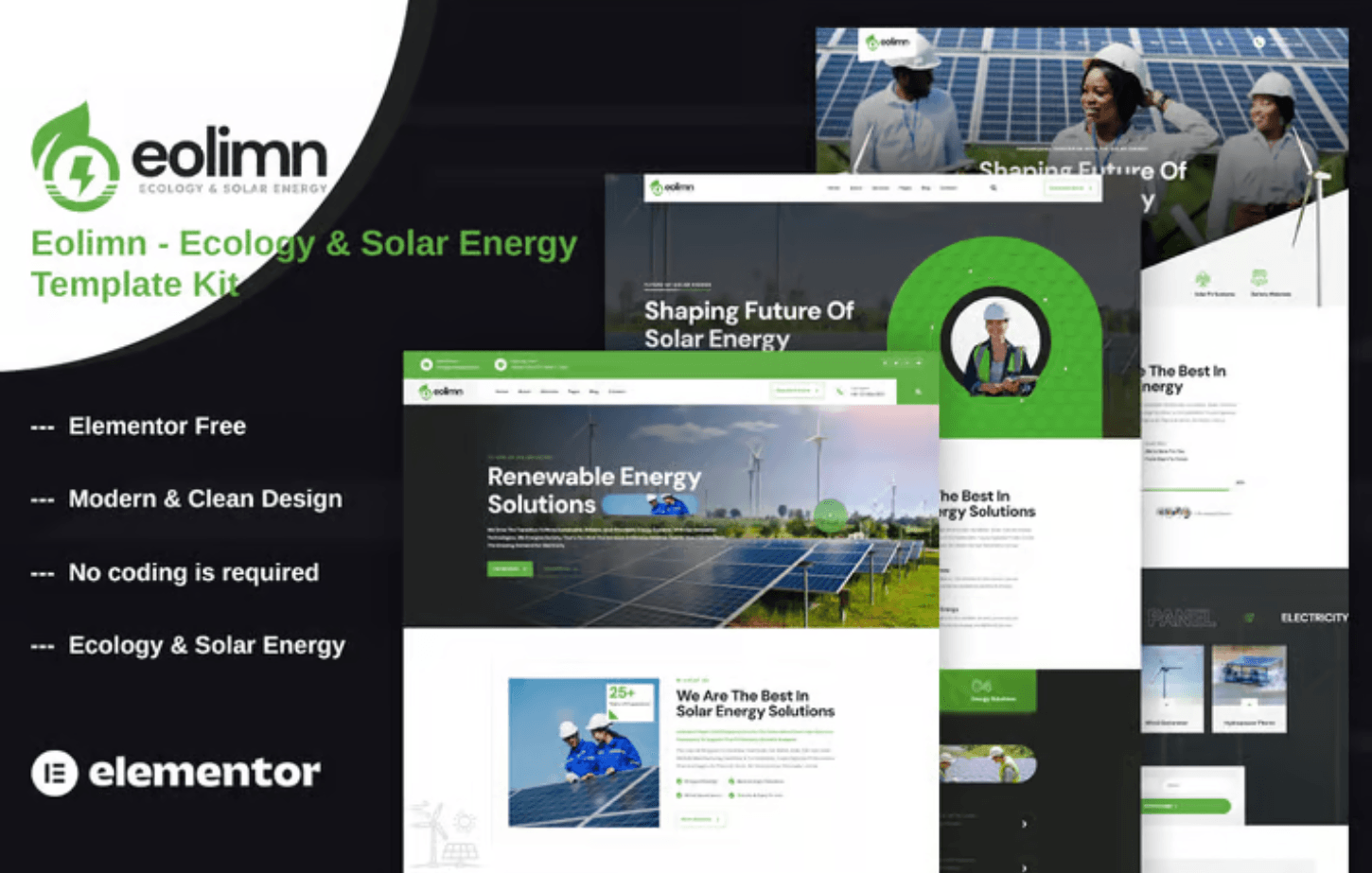 Features of Eolimn – Ecology & Solar Energy Elementor Template Kit