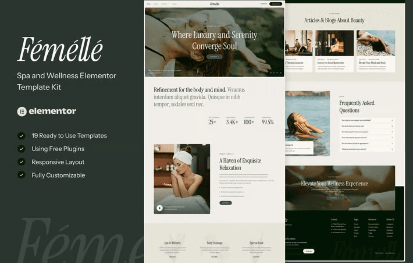 Features of Femelle – Spa & Wellness Elementor Template Kit