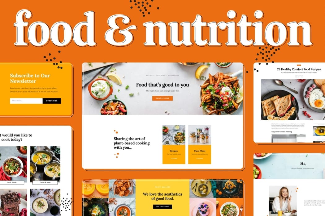 - Specialized Content Blocks – Includes recipe and newsletter blocks that help engage visitors, boost subscriptions, and showcase your culinary creations or nutrition advice.