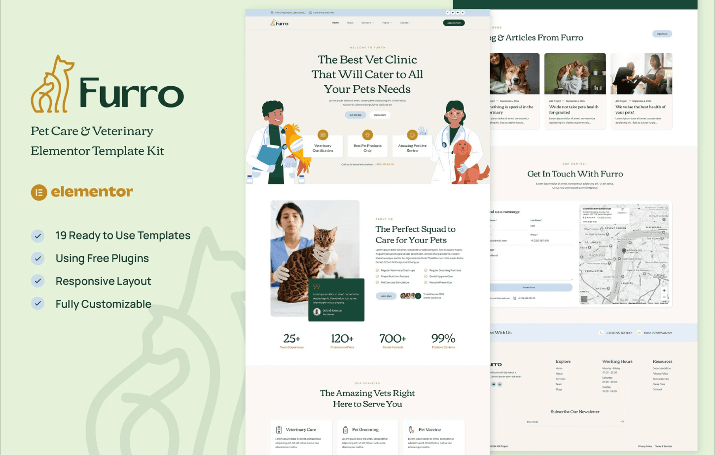Features of Furro – Pet Care & Veterinary Elementor Template Kit