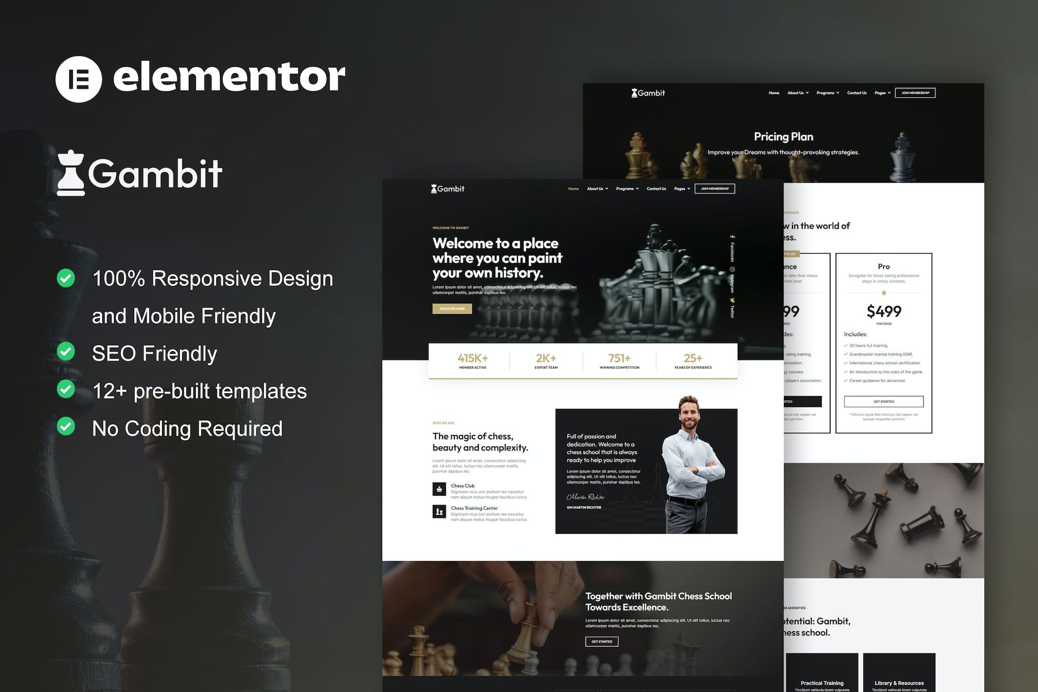 Gambit – Chess Club Courses & Training Elementor Template Kit