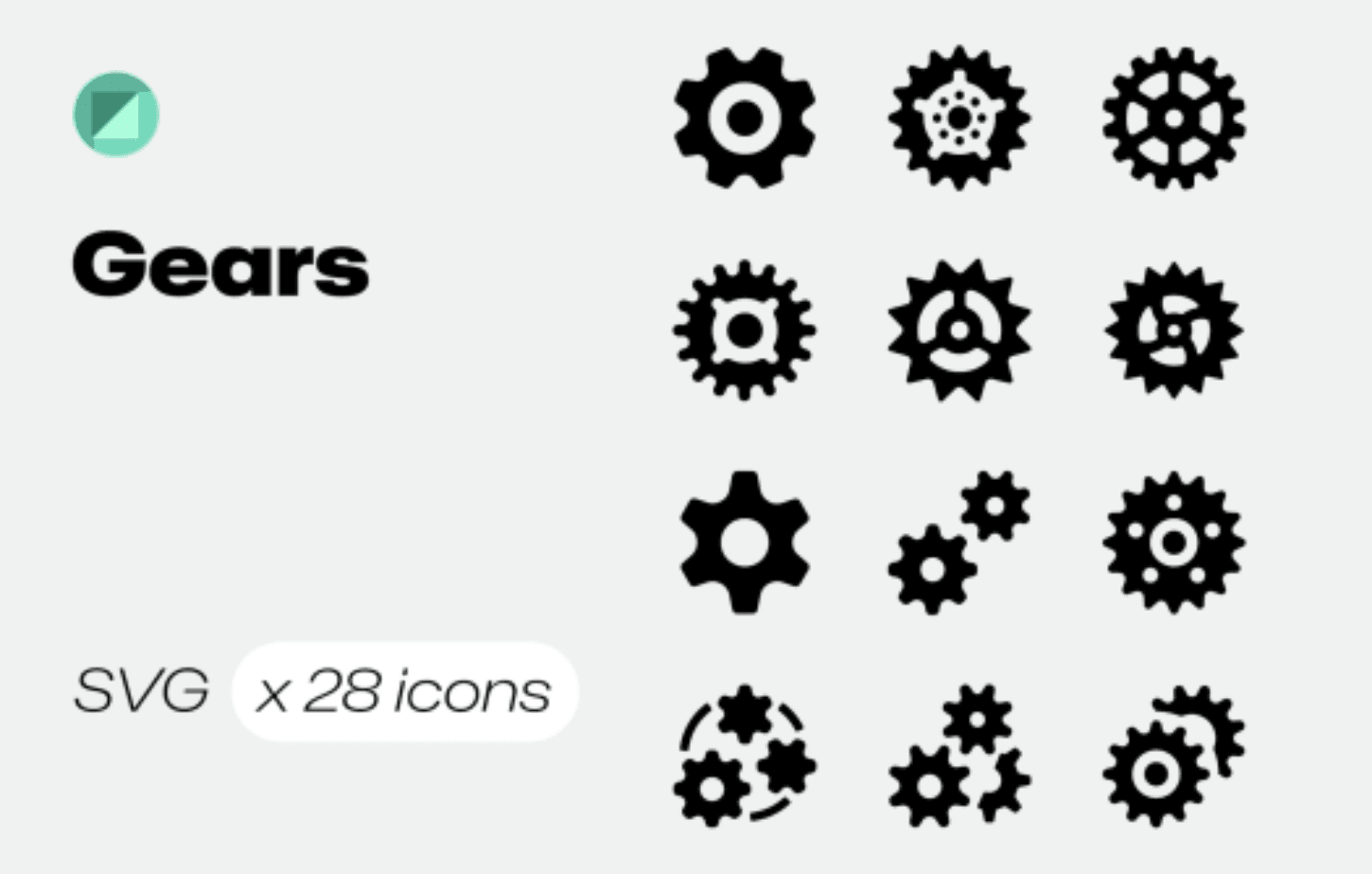 a versatile set of 28 solid gear icons designed to elevate your projects with a touch of modern style. Each icon is meticulously crafted to convey a sense of precision and functionality, making them perfect for a wide range of applications. The sleek design of the icons allows you to seamlessly integrate them into various projects, from software interfaces to industrial-themed designs.