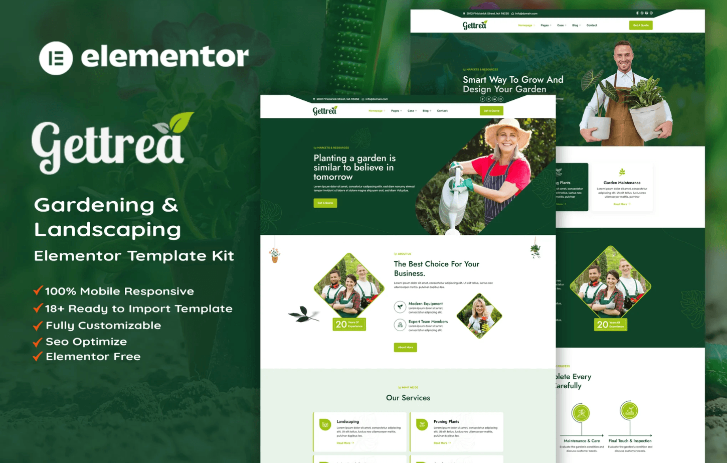 Features of Gettrea – Gardening & Landscaping Elementor Template Kit
