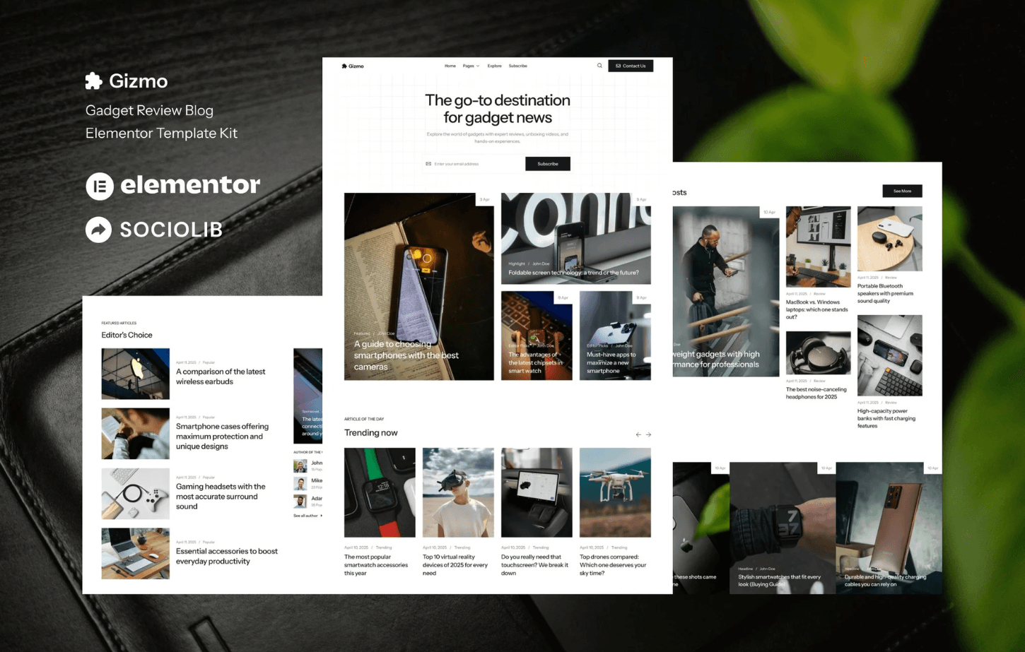 Introducing Gizmo, the ultimate Elementor template kit for gadget enthusiasts! Perfect for creating a sleek and modern review blog or magazine, Gizmo offers easy customization and responsive designs. Share your tech insights with style and engage your audience effortlessly using this user-friendly template. Let your passion for gadgets shine with Gizmo!