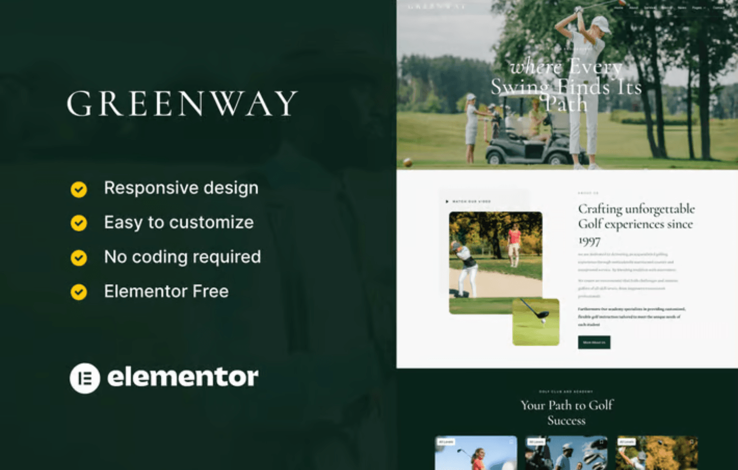 Features of GreenWay – Golf Club & Course Elementor Template Kit