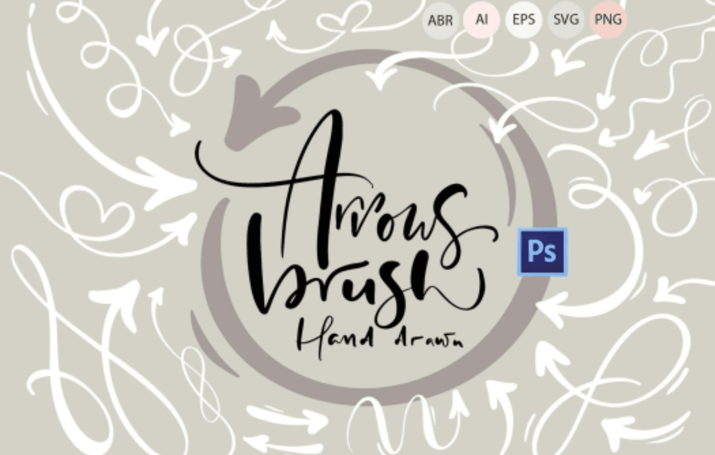 - 63 Photoshop hand drawn arrow brushes in file – “63 Arrow Brushes.abr”;