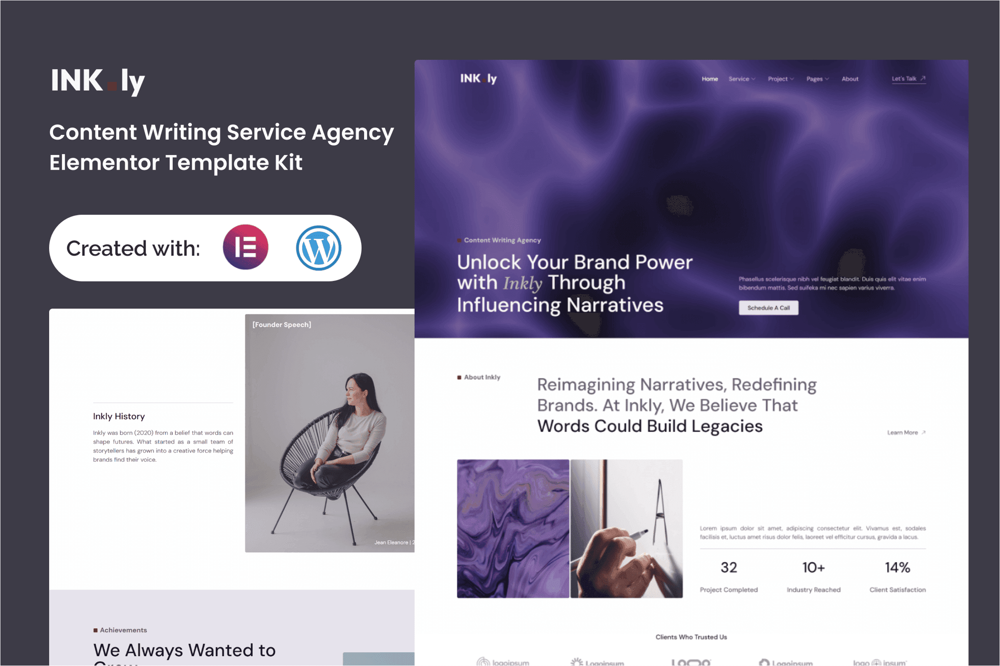Inkly – Content Writing Service Agency Elementor Template Kit
