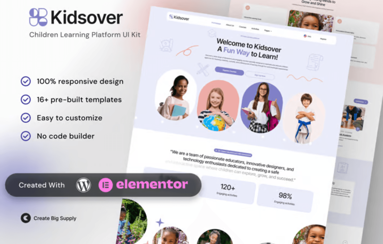 Features of Kidsover- Children’s Learning Platform Elementor Template Kit