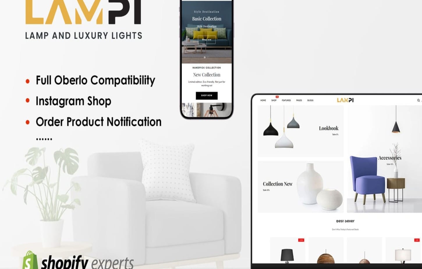 Illuminate your online store with the LAMPI Shopify Theme, perfect for selling lamps and luxury lights. It features an elegant, modern design that makes your products shine, and it’s super easy to customize. With responsive layouts, slick product displays, and built-in SEO optimization, this theme will help you attract more customers and boost your sales. Brighten up your business effortlessly!