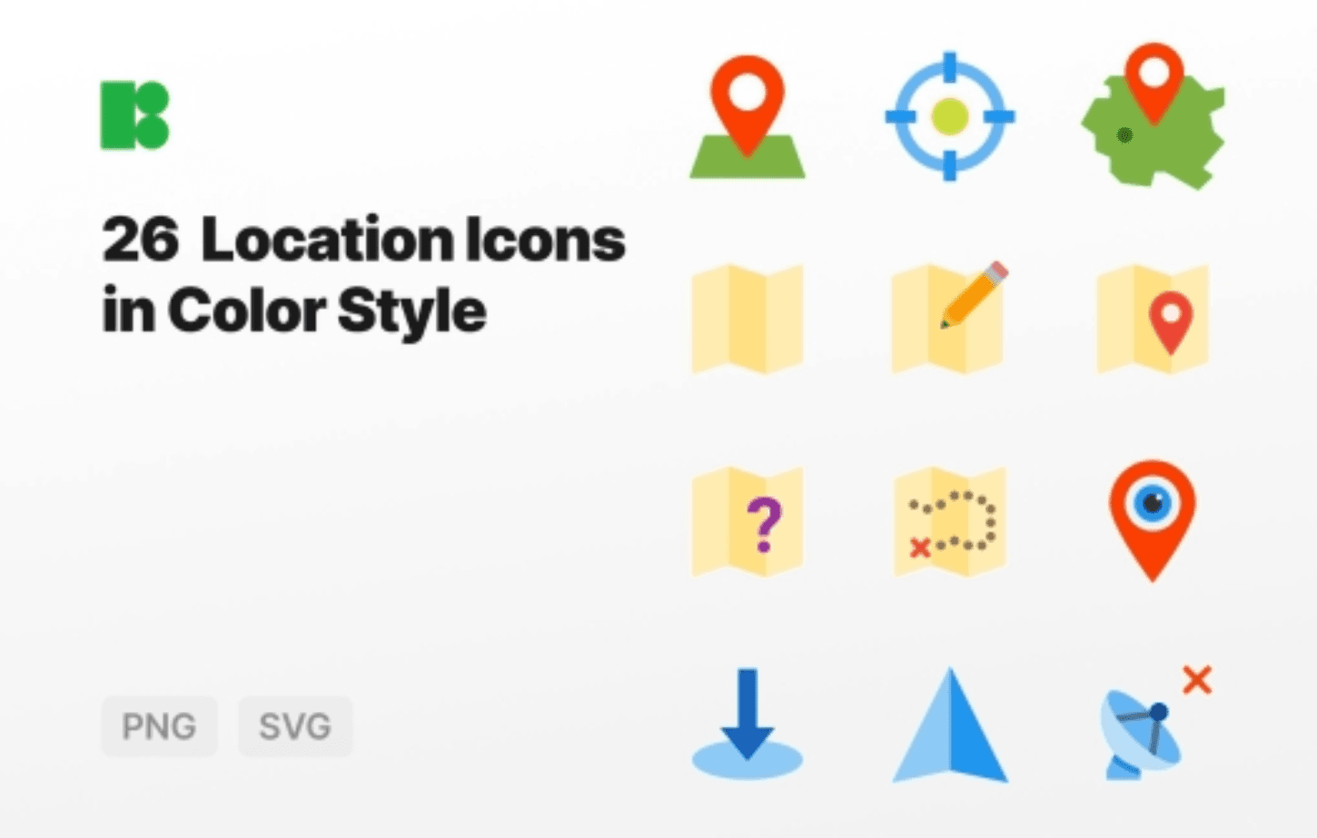 A versatile set of Location Icons in a vibrant color palette! These icons are available in Vector SVG and PNG formats, ensuring crisp and clear graphics for all your design needs. Perfect for a range of projects, these icons are a must-have for anyone working on themes such as GPS, location services, or map-related designs.