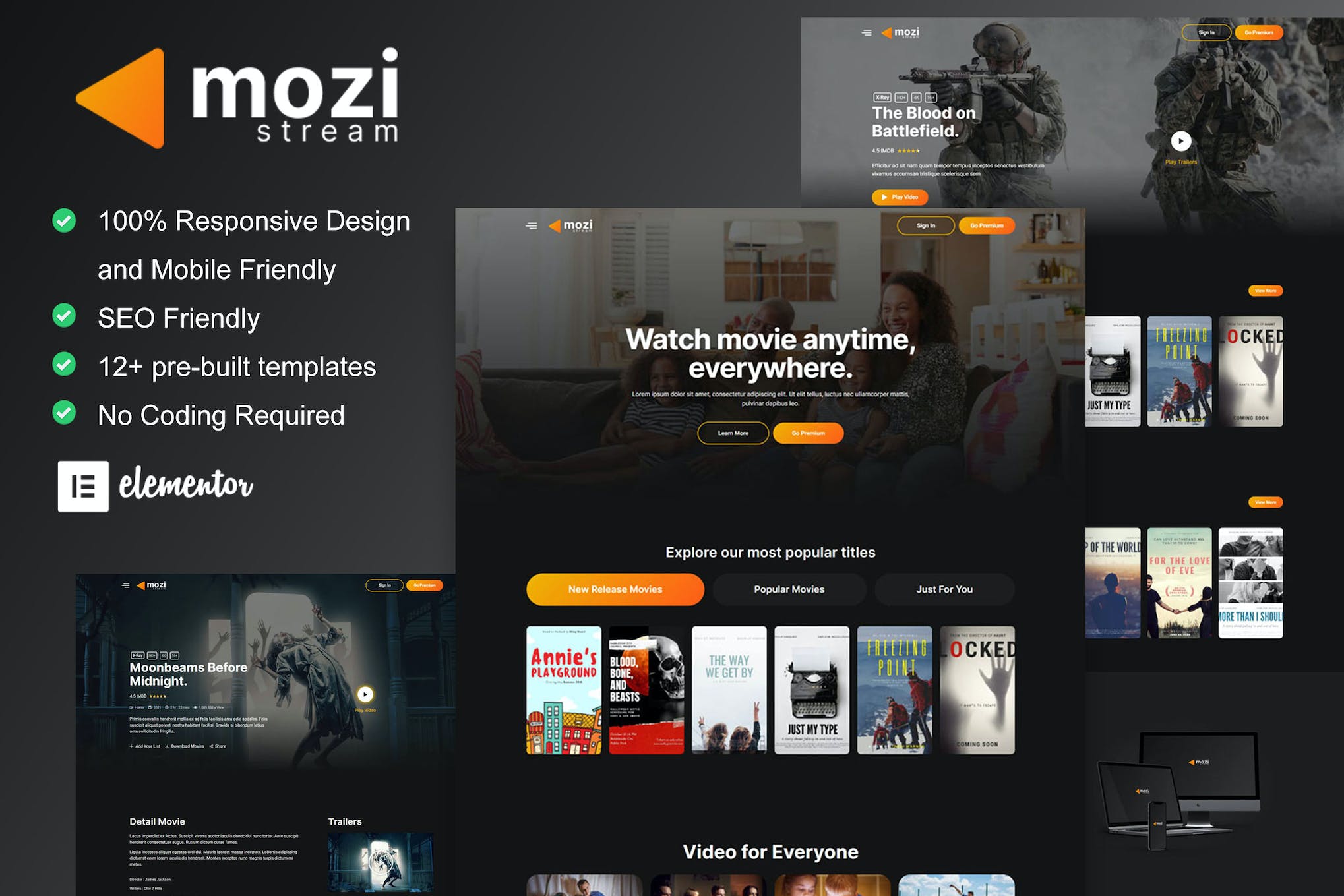 Features of Mozi – Movie Streaming Service Elementor Template Kit
