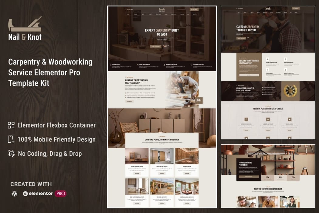Features of Nail&Knot – Carpentry & Woodworking Service Elementor Pro Template Kit