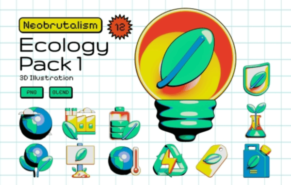 - the Neobrutalism Style Ecology 3D Icon set