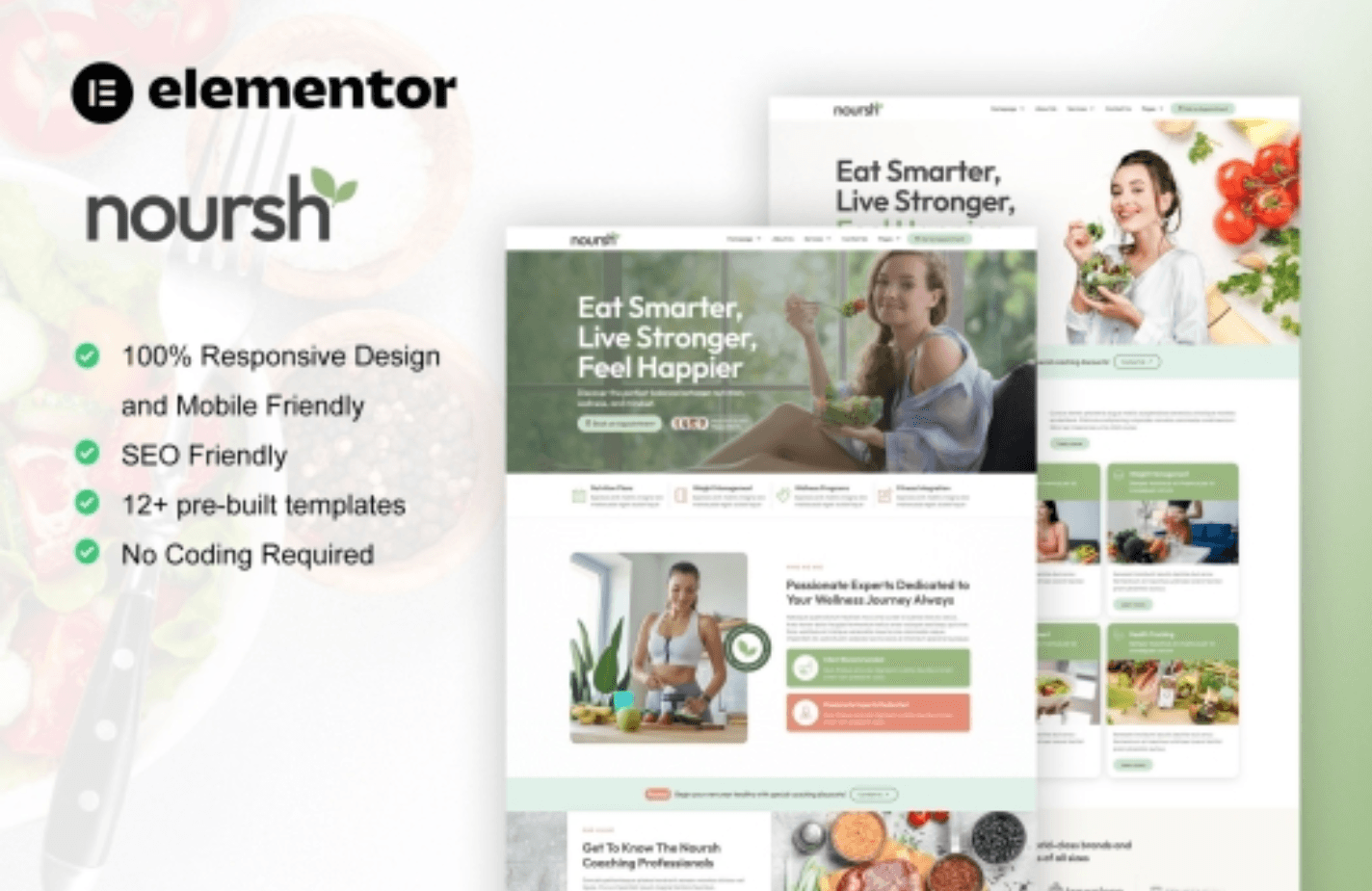 Features of Noursh – Healthy Food & Nutrition Elementor Pro Template Kit