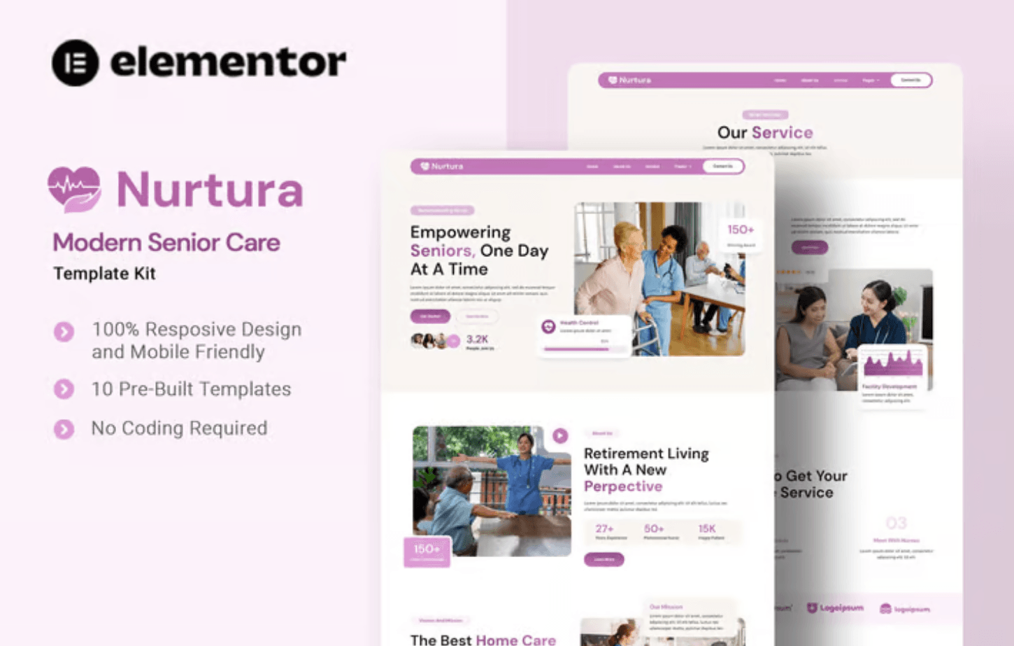 Features of Nurtura – Modern Senior Care Elementor Template Kit