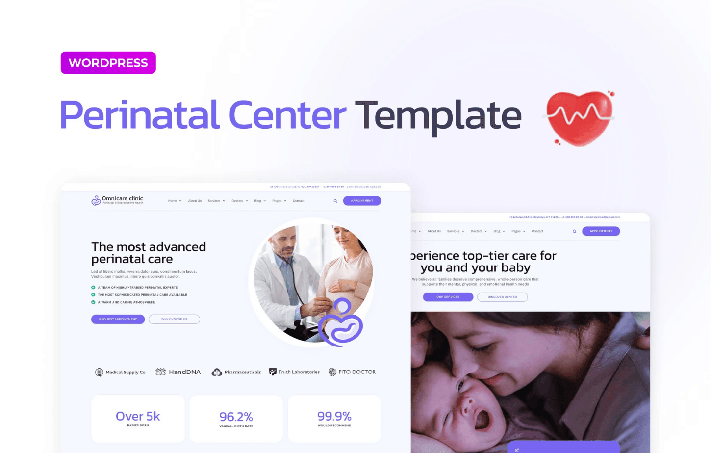 Omnicare’s Reproductive & Perinatal Center Template Kit is perfect for building a professional and user-friendly website for clinics. Packed with modern design elements, it’s easy to customize using Elementor Pro, ensuring your site looks great on any device. Ideal for fertility specialists and pregnancy care centers, it helps you showcase your services and connect with clients effortlessly.