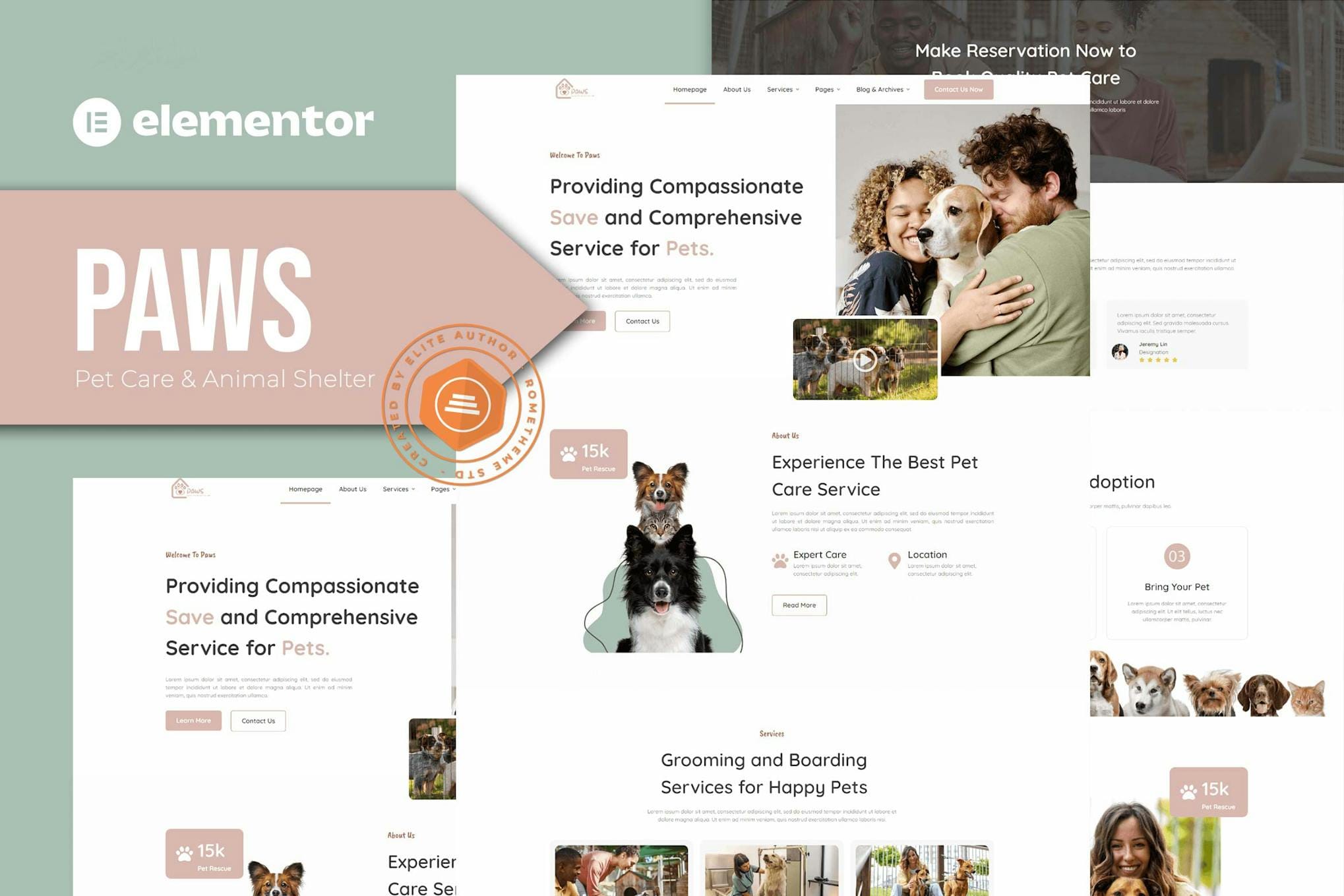 Paws – Pet Care and Animal Shelter Elementor Template Kit