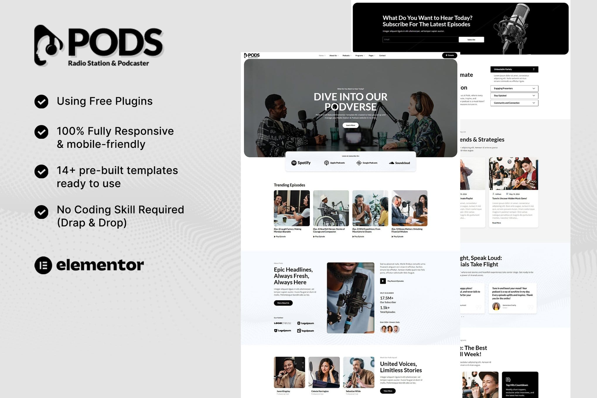 Features of Potshow – Radio Station & Podcaster Elementor Template Kit