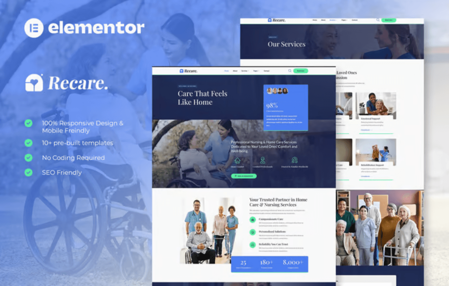 Features of Recare – Home Care & Private Nursing Elementor Template Kit