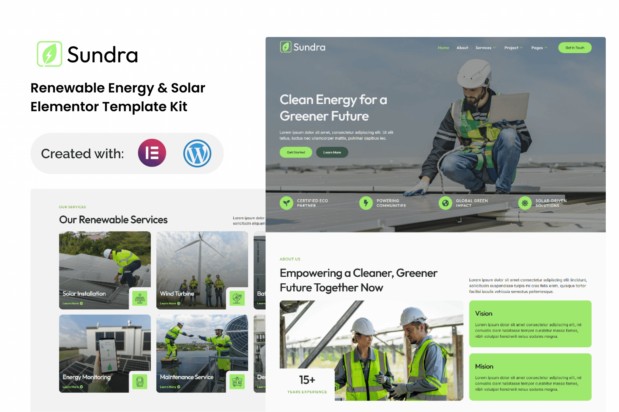 Features of Sundra – Renewable & Energy Solar Elementor Template Kit