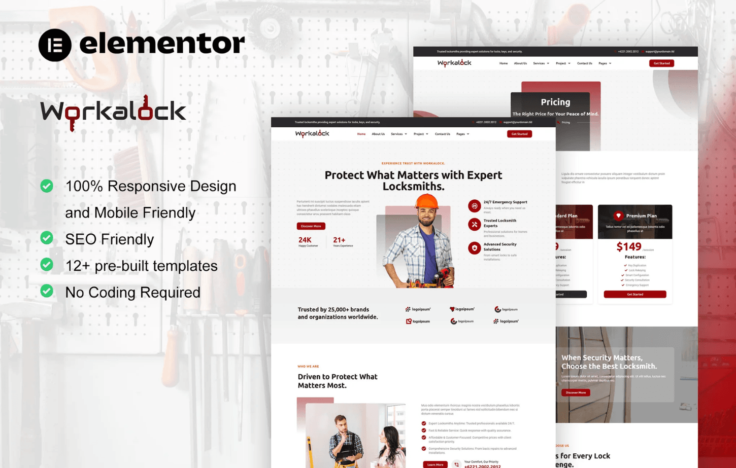 - Designed specifically for locksmith and key maker services using Elementor Pro.