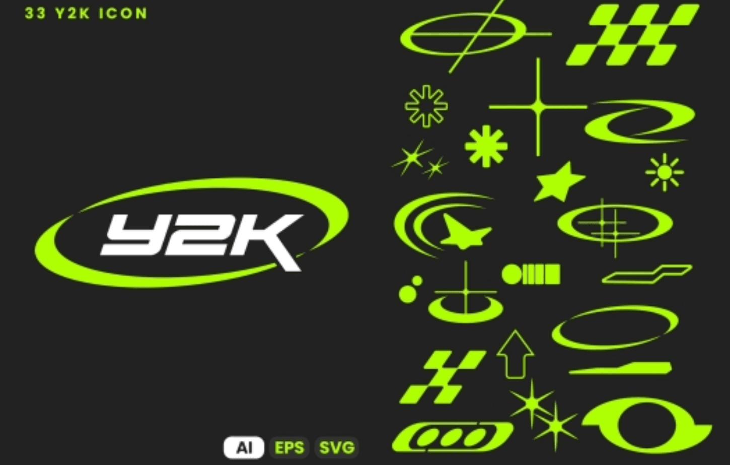 the Stellar Y2K Icon Set, a collection of 33 unique and striking icons that will elevate the visual appeal of your projects. This set includes icons in AI, EPS, and SVG formats, ensuring compatibility and convenience for all your design needs. Each icon is meticulously crafted to capture the essence of the Y2K era while adding a modern twist to suit contemporary design trends.
