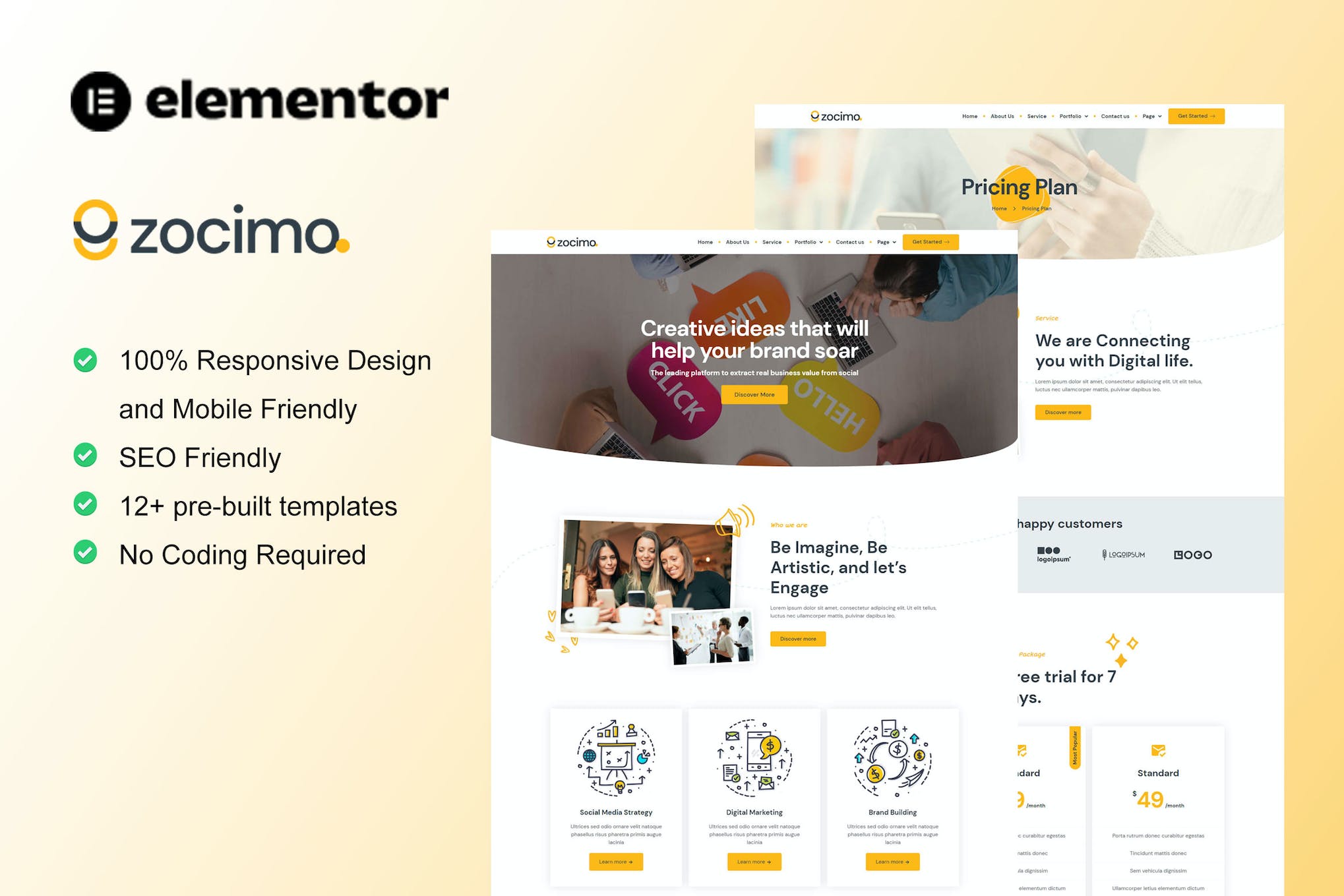 Features of Zocimo – Social Media Marketing Agency Elementor Template Kit